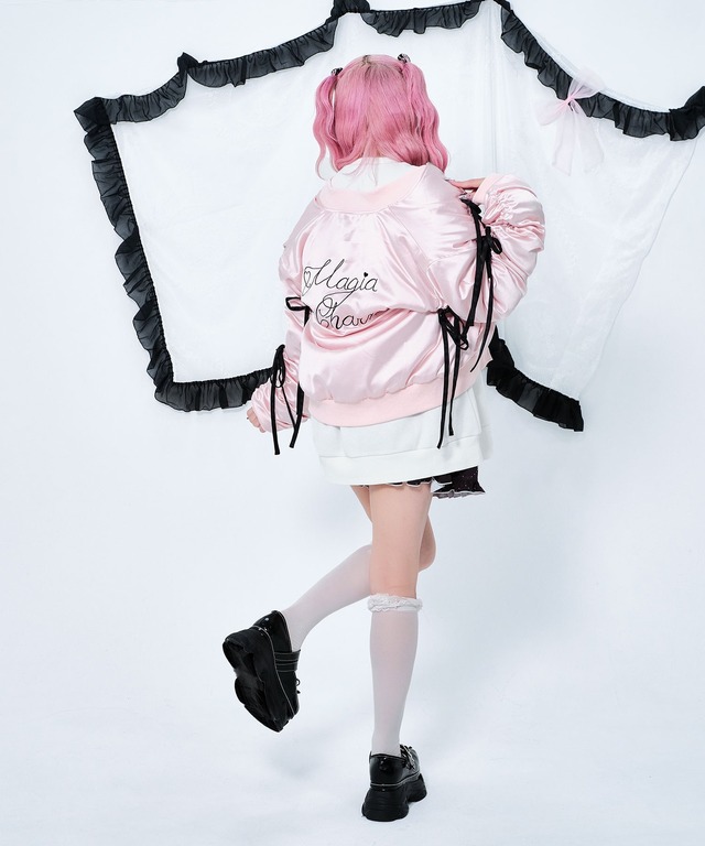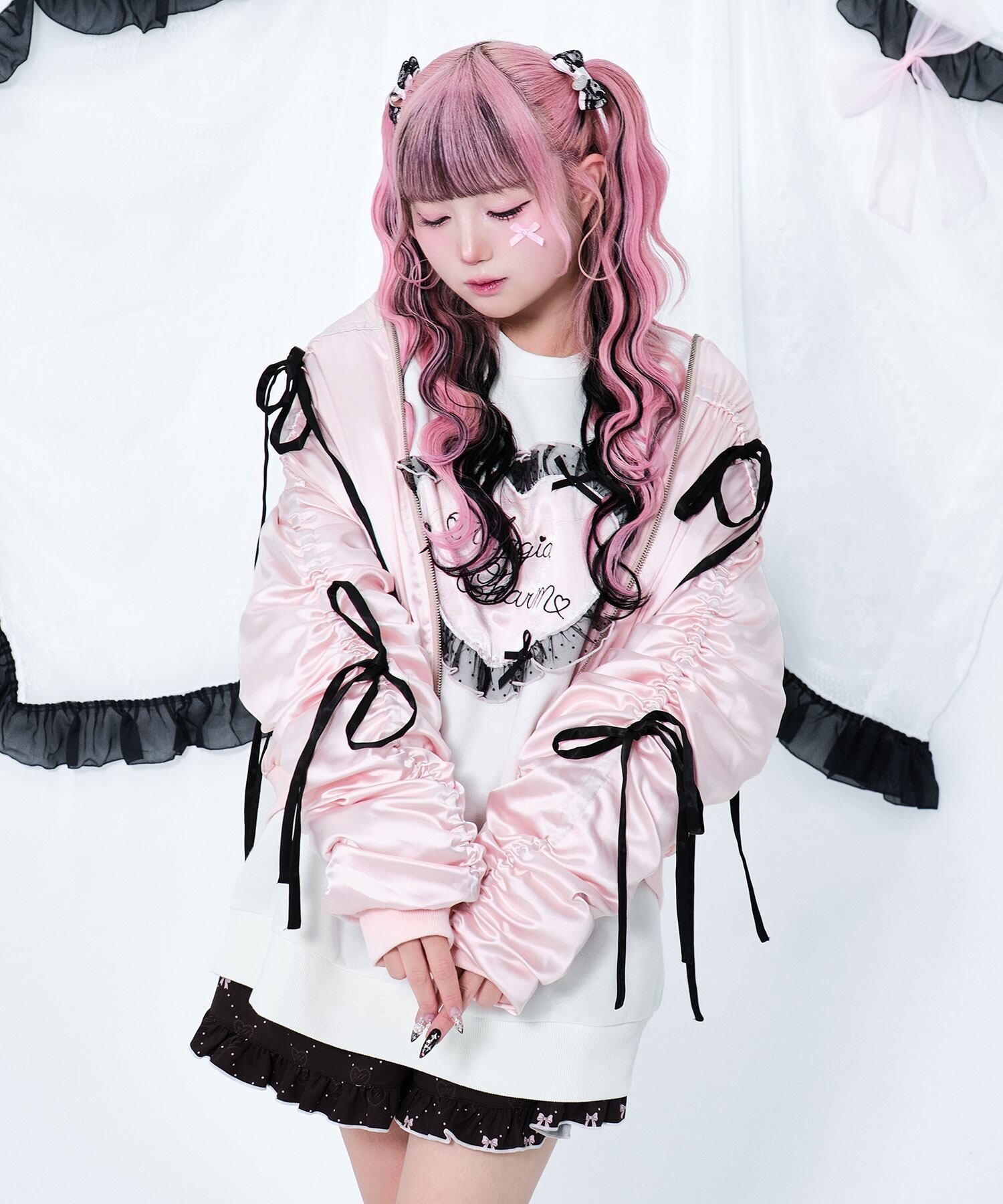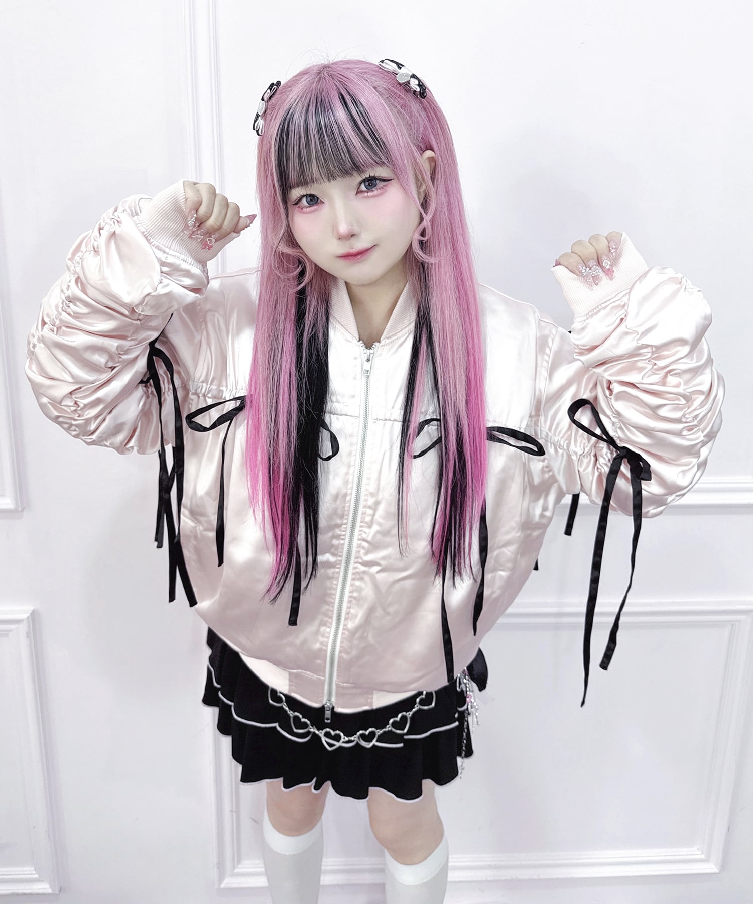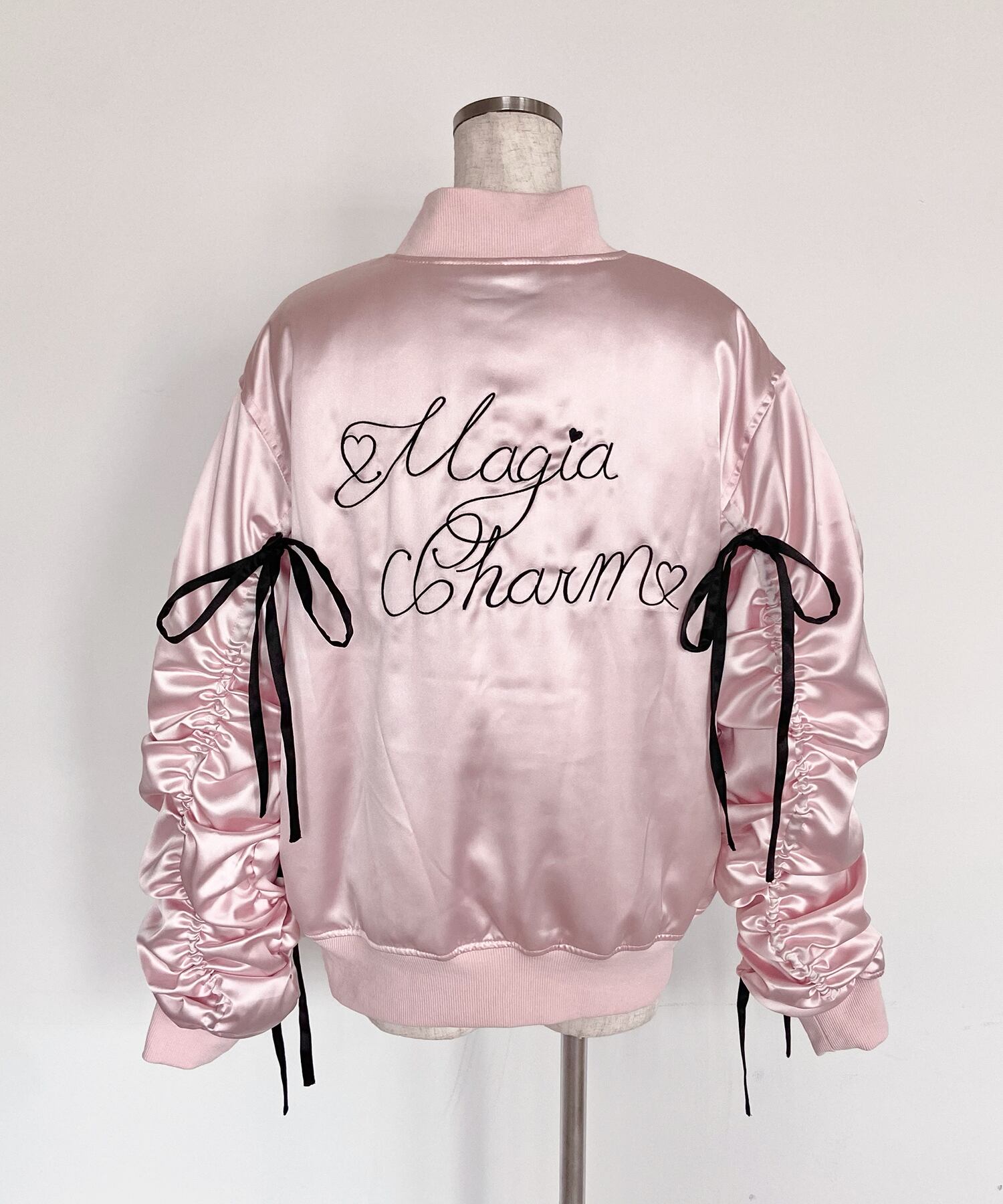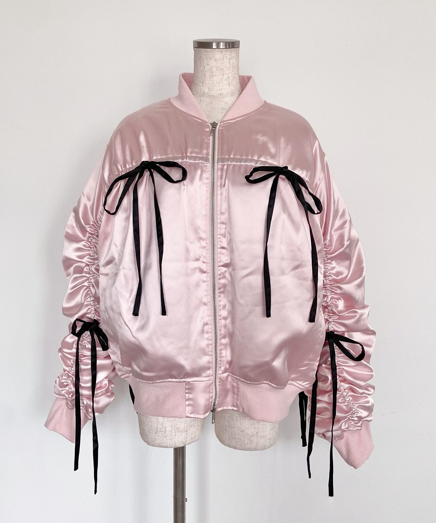 リボンギャザーサテンブルゾン(ピンク)¥19,900→