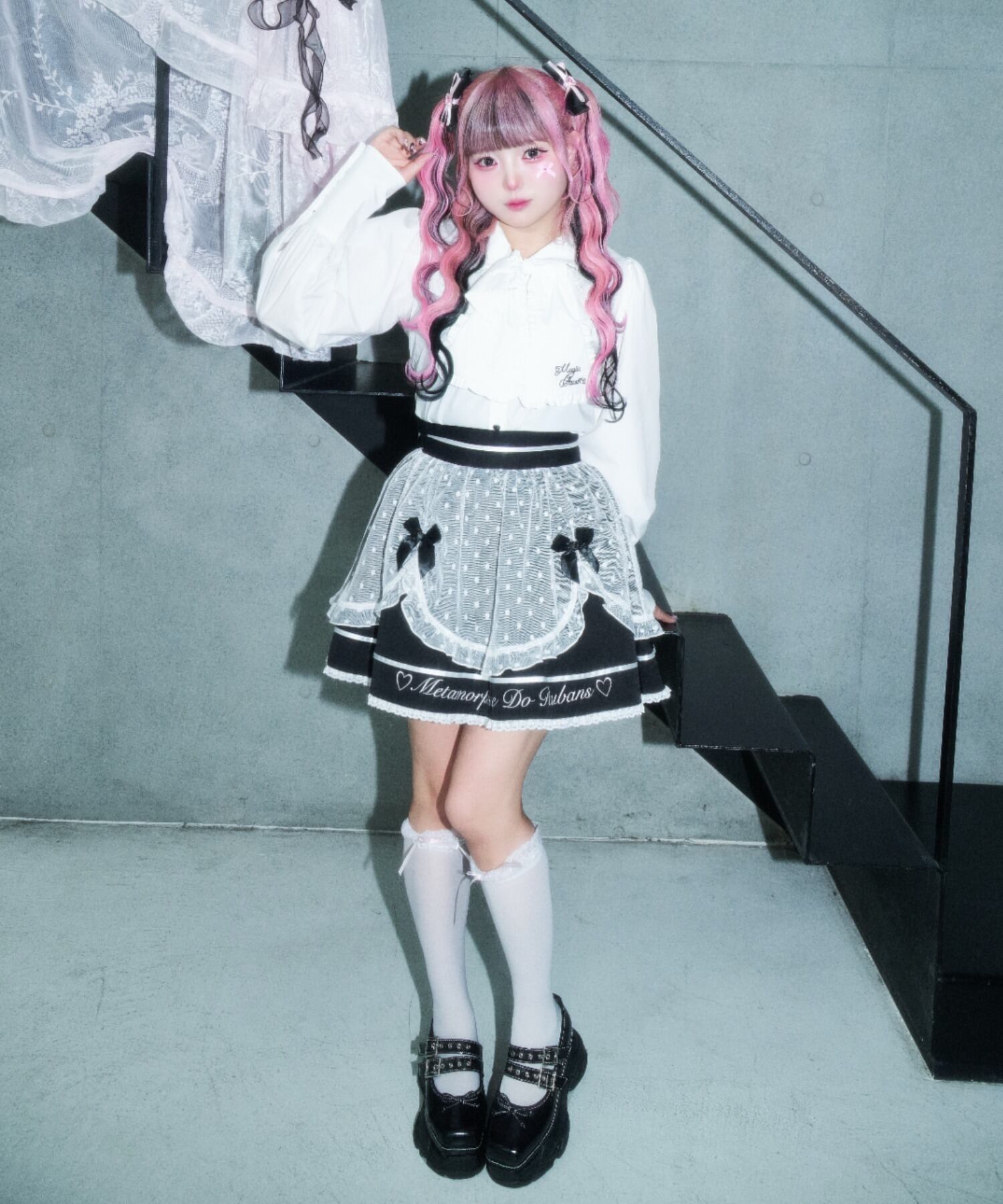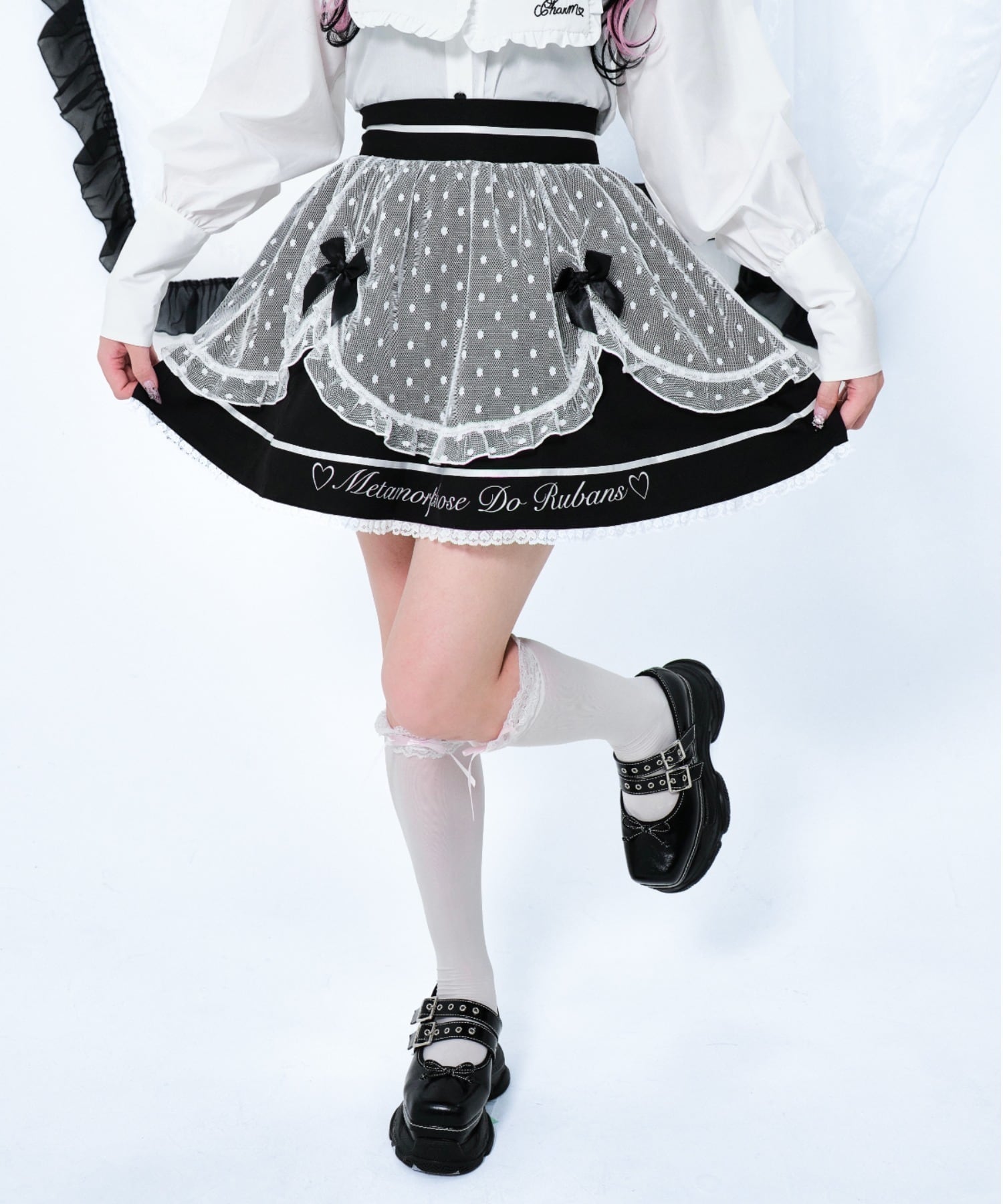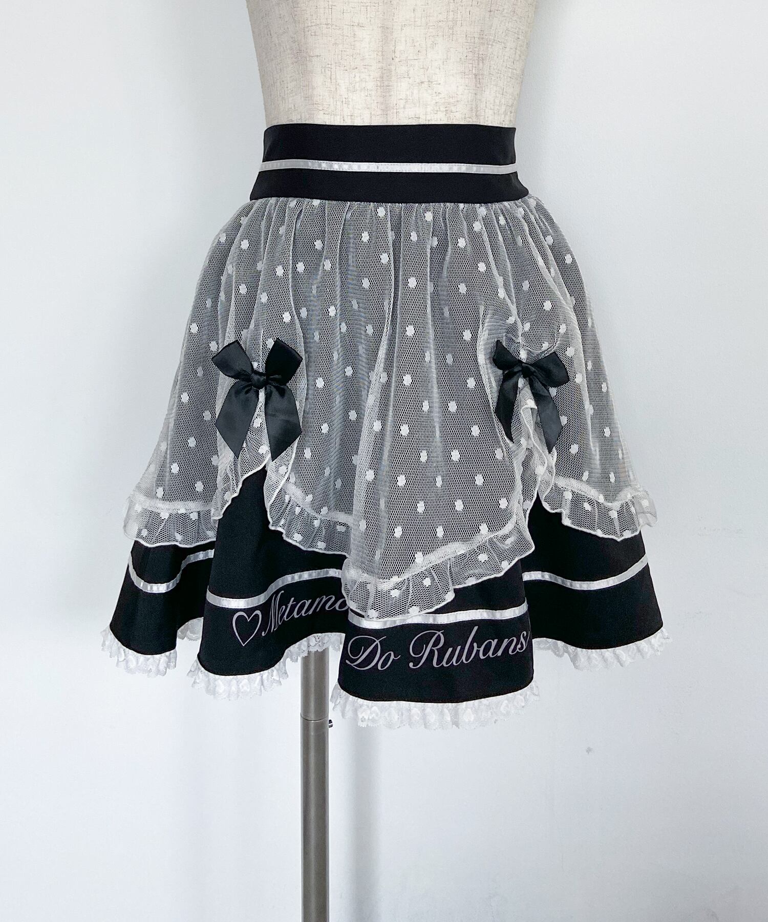 スカートの上から重ねたようなエプロンデザインには透け感のあるドットチュール!