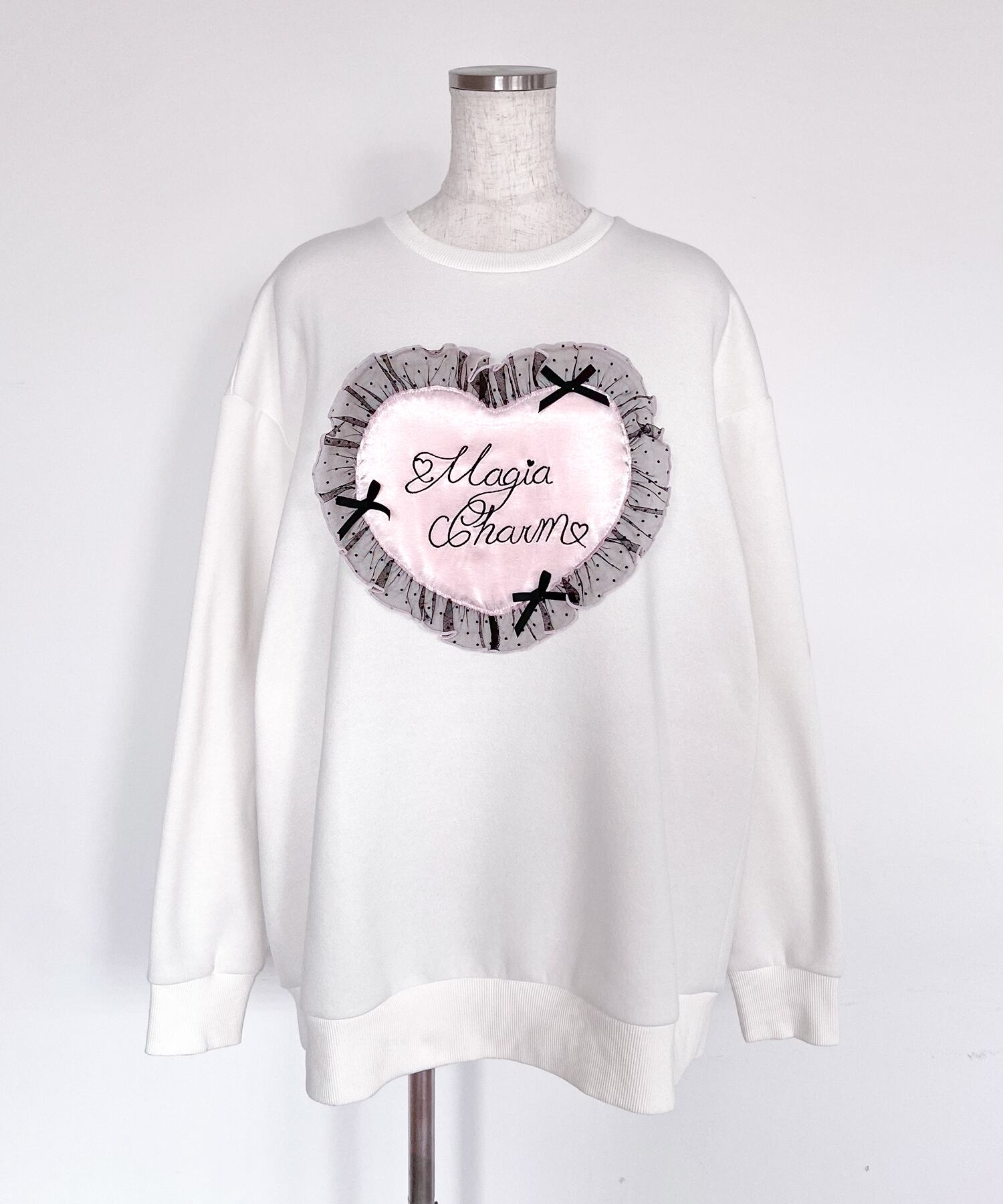 胸元には、ふんわりとした大きなハートアップリケをあしらいました。