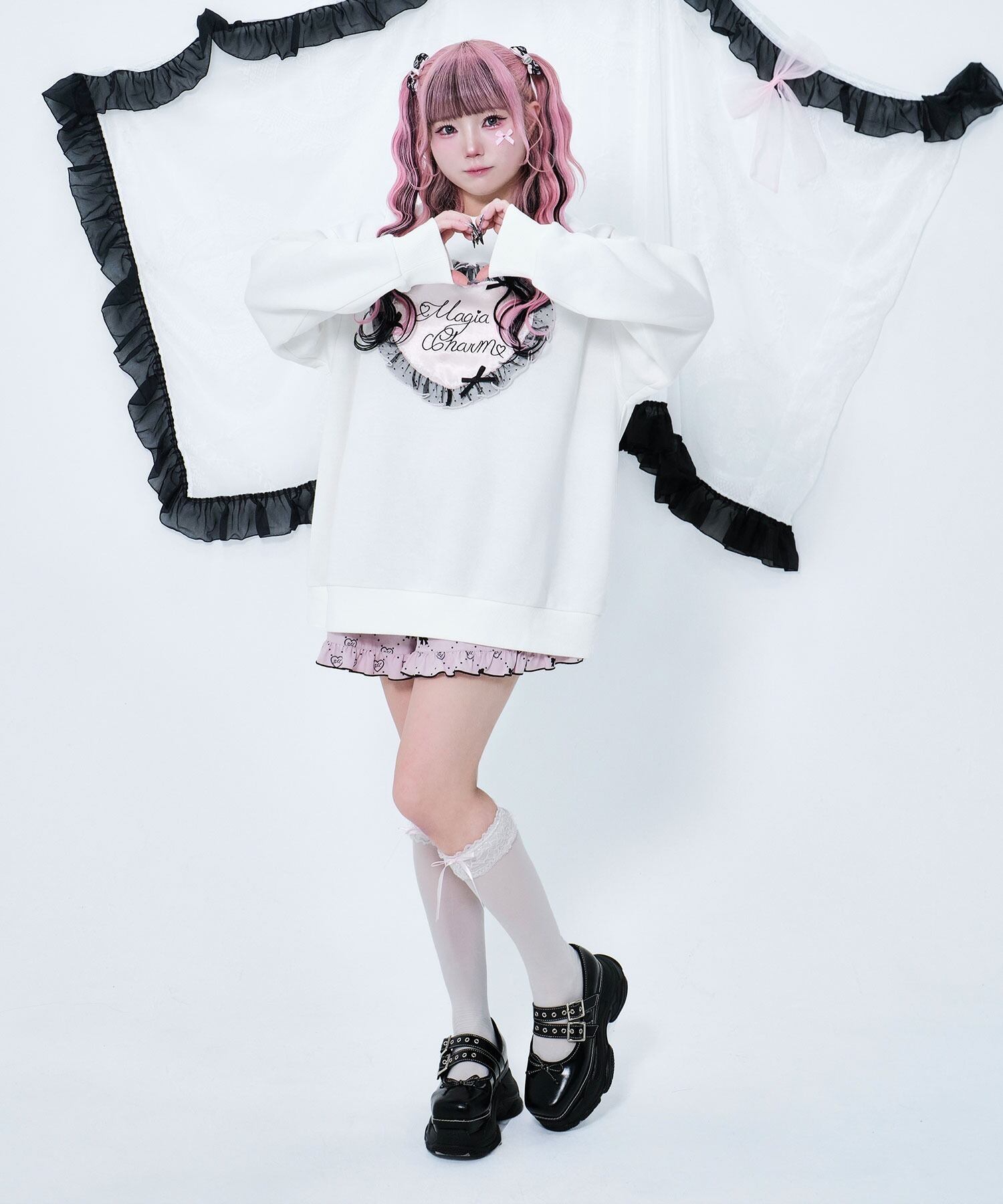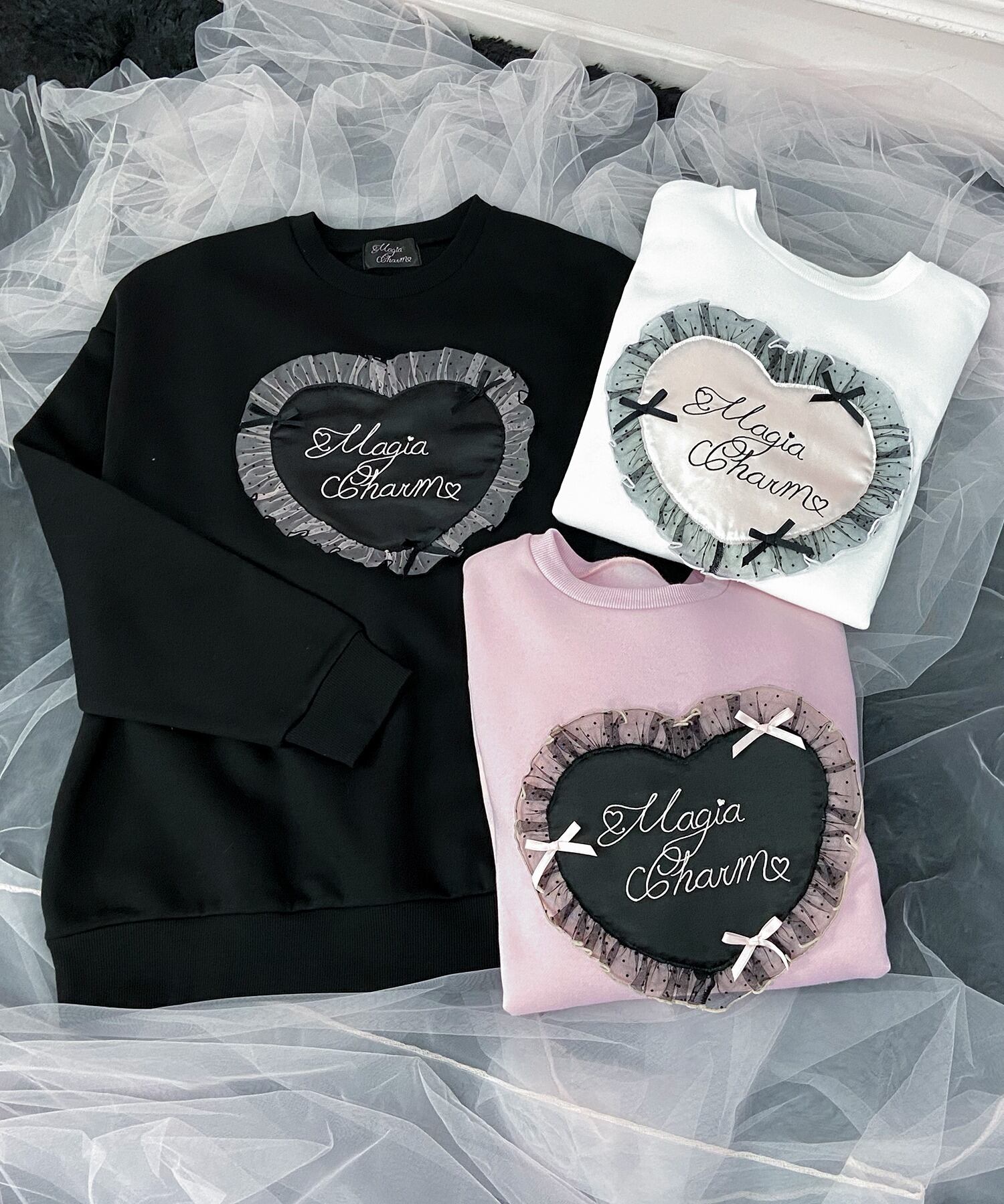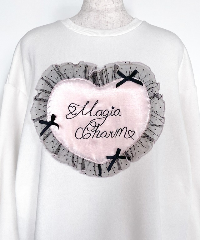 ドットチュールのフリルがハートの輪郭を縁取り、さりげなくも愛らしい表情をプラスします♡