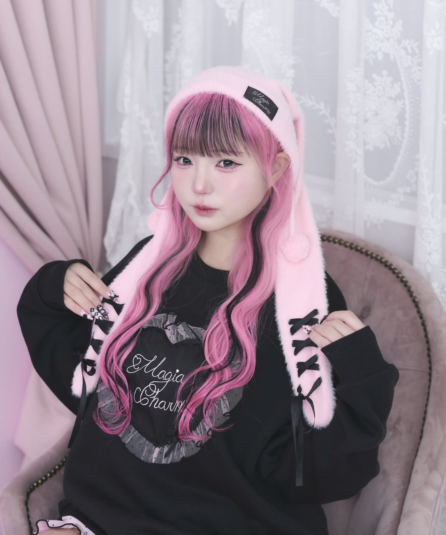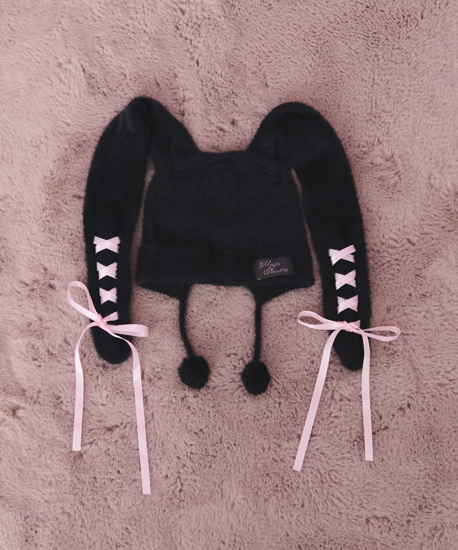 フロントのワンポイント、ポンポンとうさみみのレースアップリボンがアクセントをプラス♡