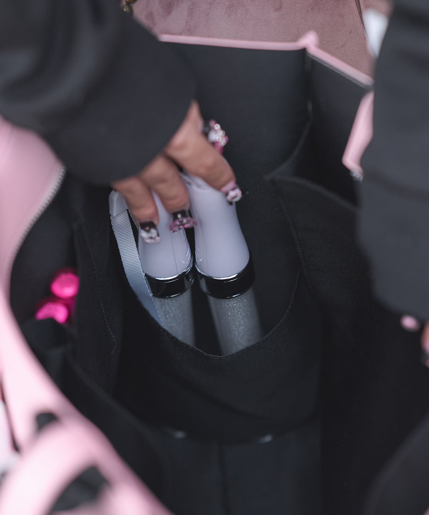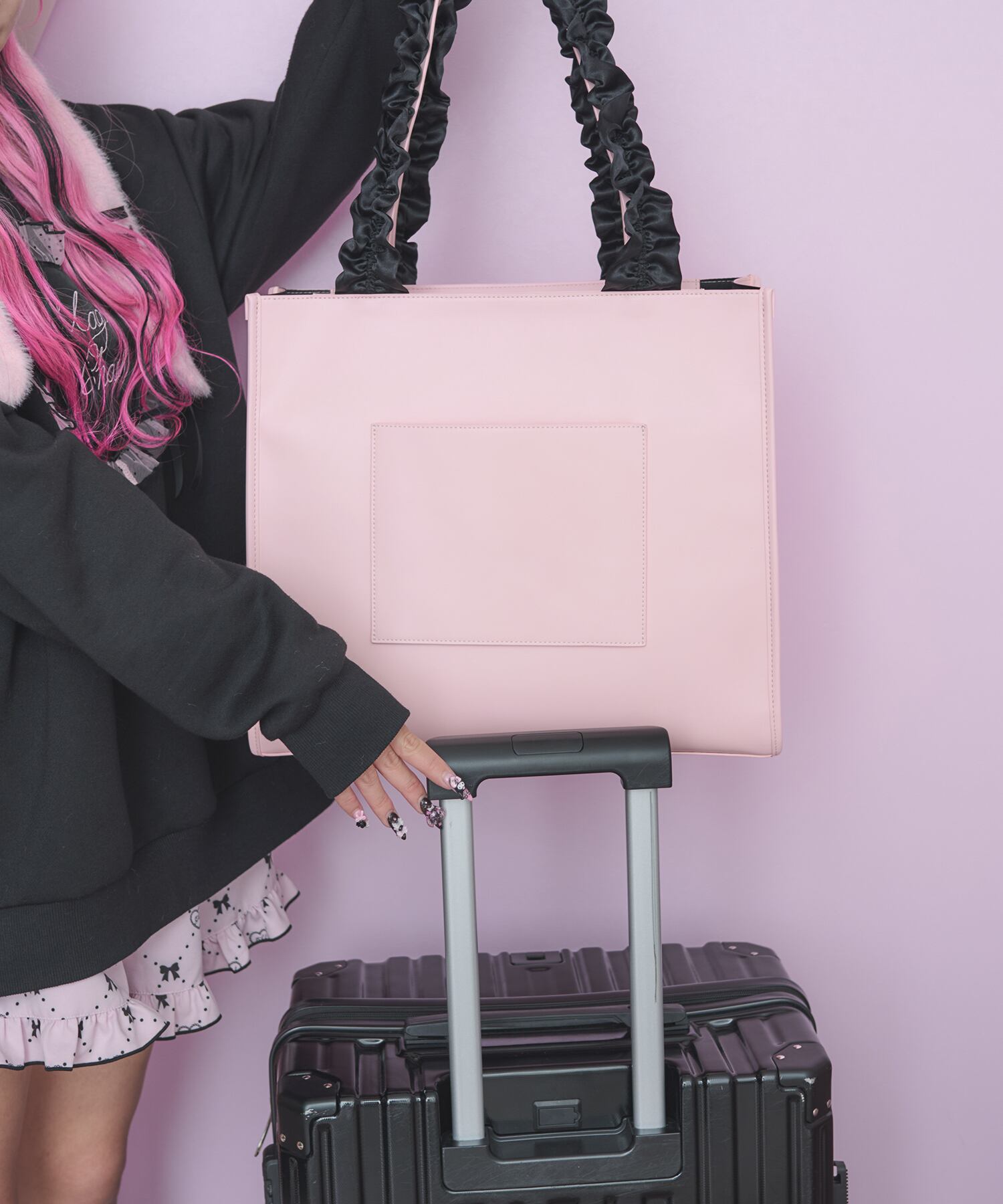 キャリーの上に乗せた際に背面にハンドルを通せることで、安定感があり持ち運びにも便利なところが嬉しいポイント♡