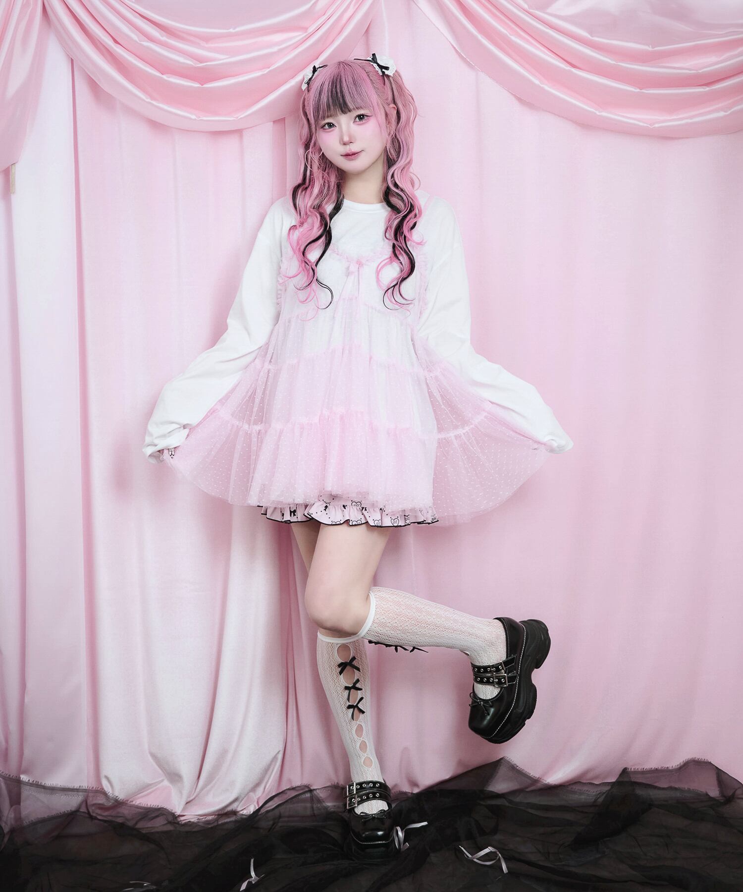 ピンクのドットチュールがとってもかわいいくて