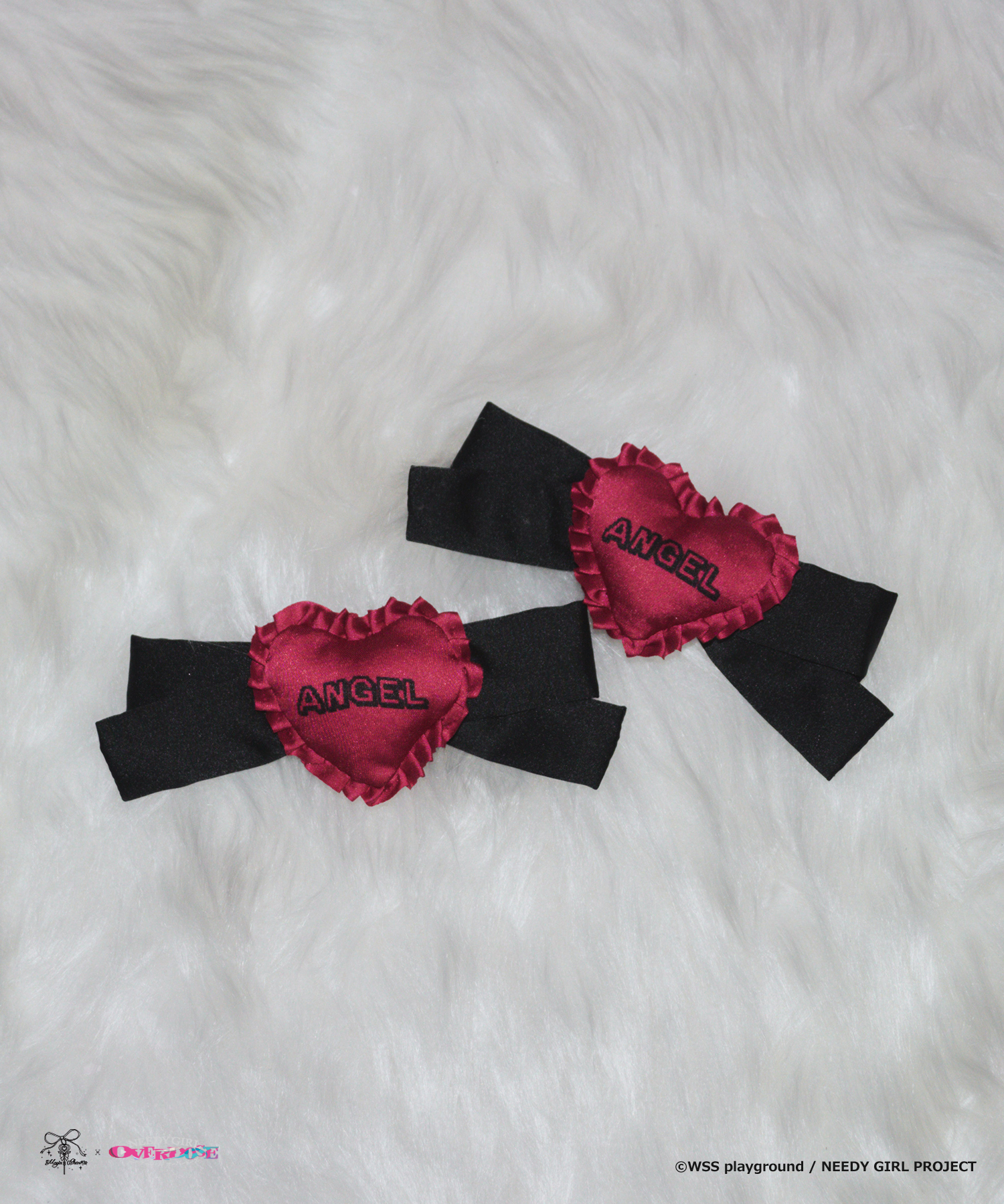 ANGELハートレースリボンクリップ2Pセット(ブラック)