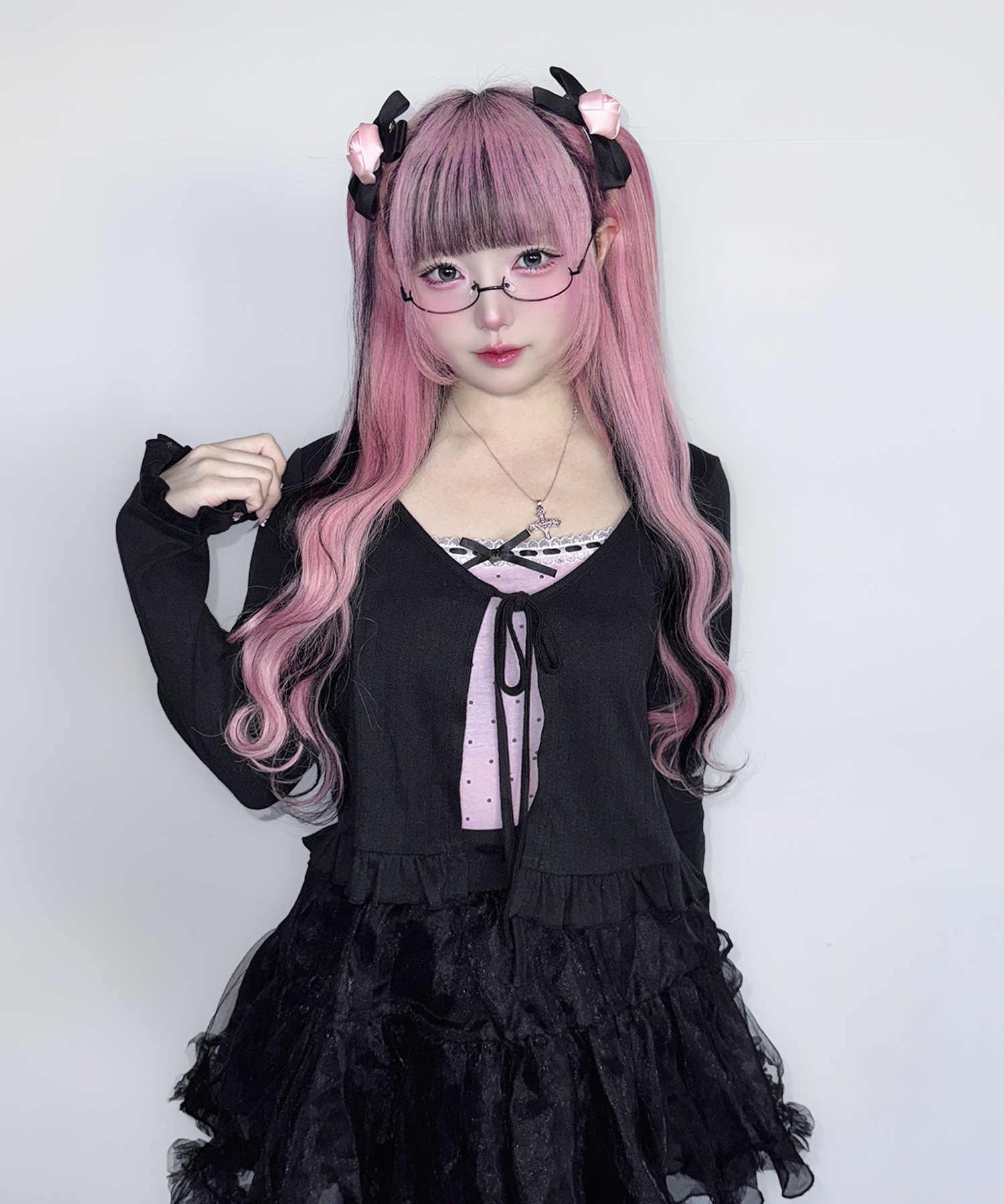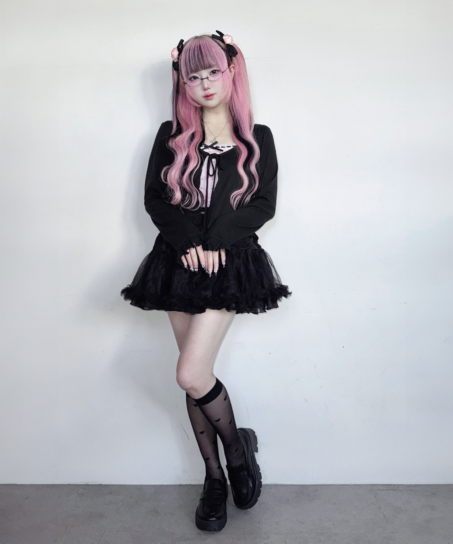 カーディガンはリボンで結ぶデザインで、さらっと羽織るだけでかわいいシルエットに!